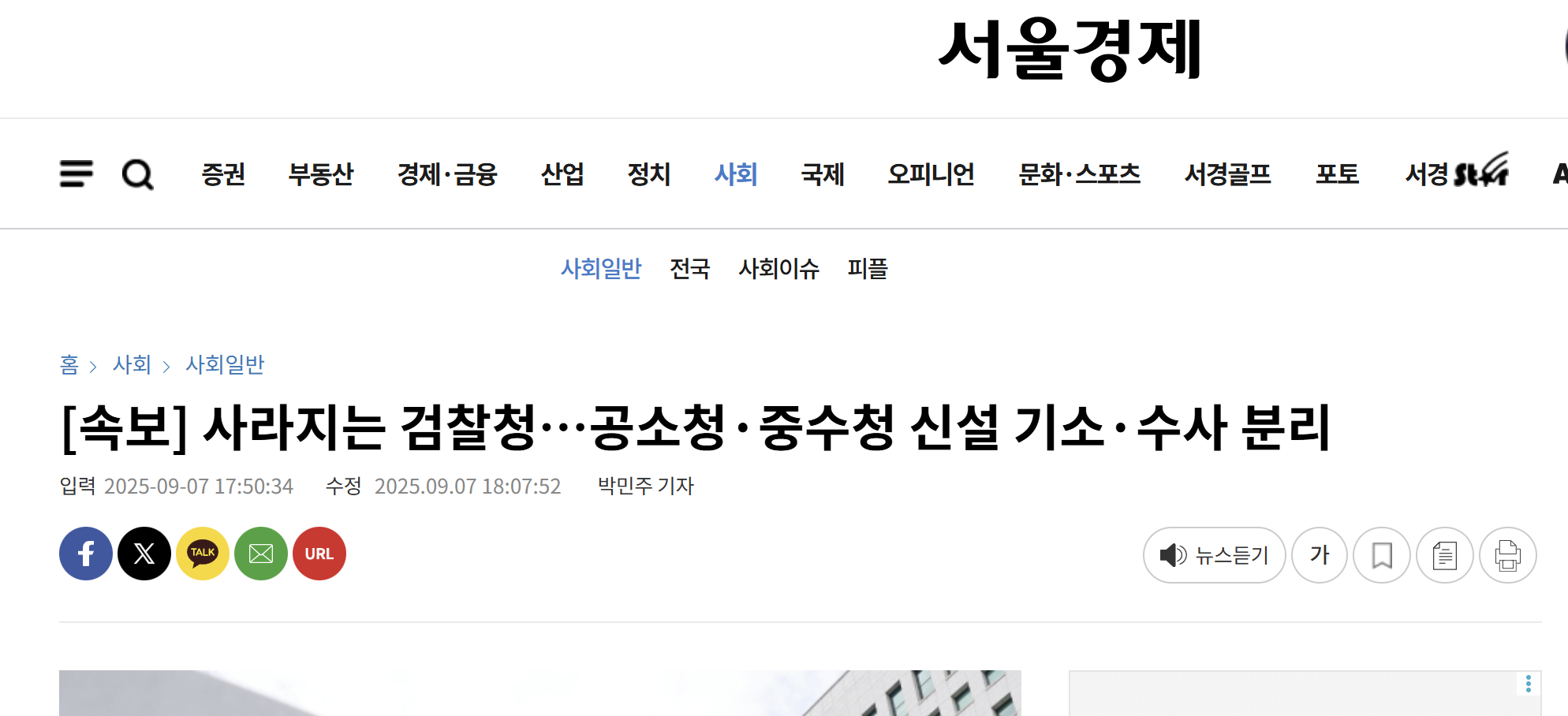 검찰청은 1948년 정부 수립과 함께 설치되어, 대통령이라도 잘못하면 법정에 세울 수 있는 마지막 보루였습니다. 불완전함이 있었더라도, 권력의 불법과 부패를 견제하는 역할만큼은 수행해 왔습니다. 그런데 정권은 검찰청을 역사 속으로 밀어 넣고, 기소권을 ‘공소청’, 수사권을 ‘중수청’으로 쪼갰습니다. 표면적으로는 권한 분산이지만, 실질은 권력 영향권 아래의 이원화입니다. 기소와 수사가 분리되면 책임은 흐려지고, 각 기관은 서로를 핑계 삼아 아무도 온전히 책임지지 않습니다. 그 사이 권력은 빈틈을 파고듭니다. 인사권을 통해 양쪽을 장악하면, 제도는 껍데기만 남습니다.