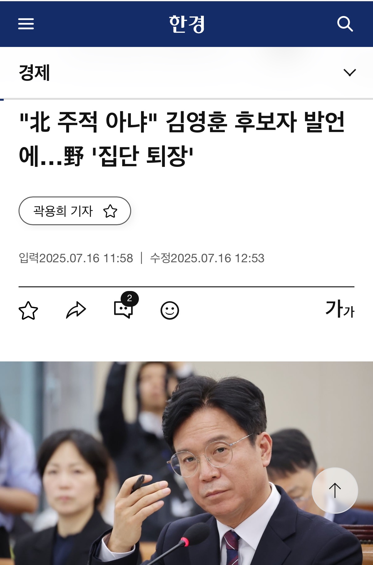 국민의힘 김형동 의원은 “주적이라는 표현은 단어의 문제가 아니라, 국가 생존의 기준이며 현실적인 위협 대응의 상징”이라고 밝혔고, 회의장에서 “이런 인물이 통일부 장관이 될 수 없다”는 구호가 이어졌습니다. 결국 국민의힘 의원들은 전원 퇴장하며 청문회는 일시 중단되었고, 이후 회의는 야당 단독으로 속개되었습니다.