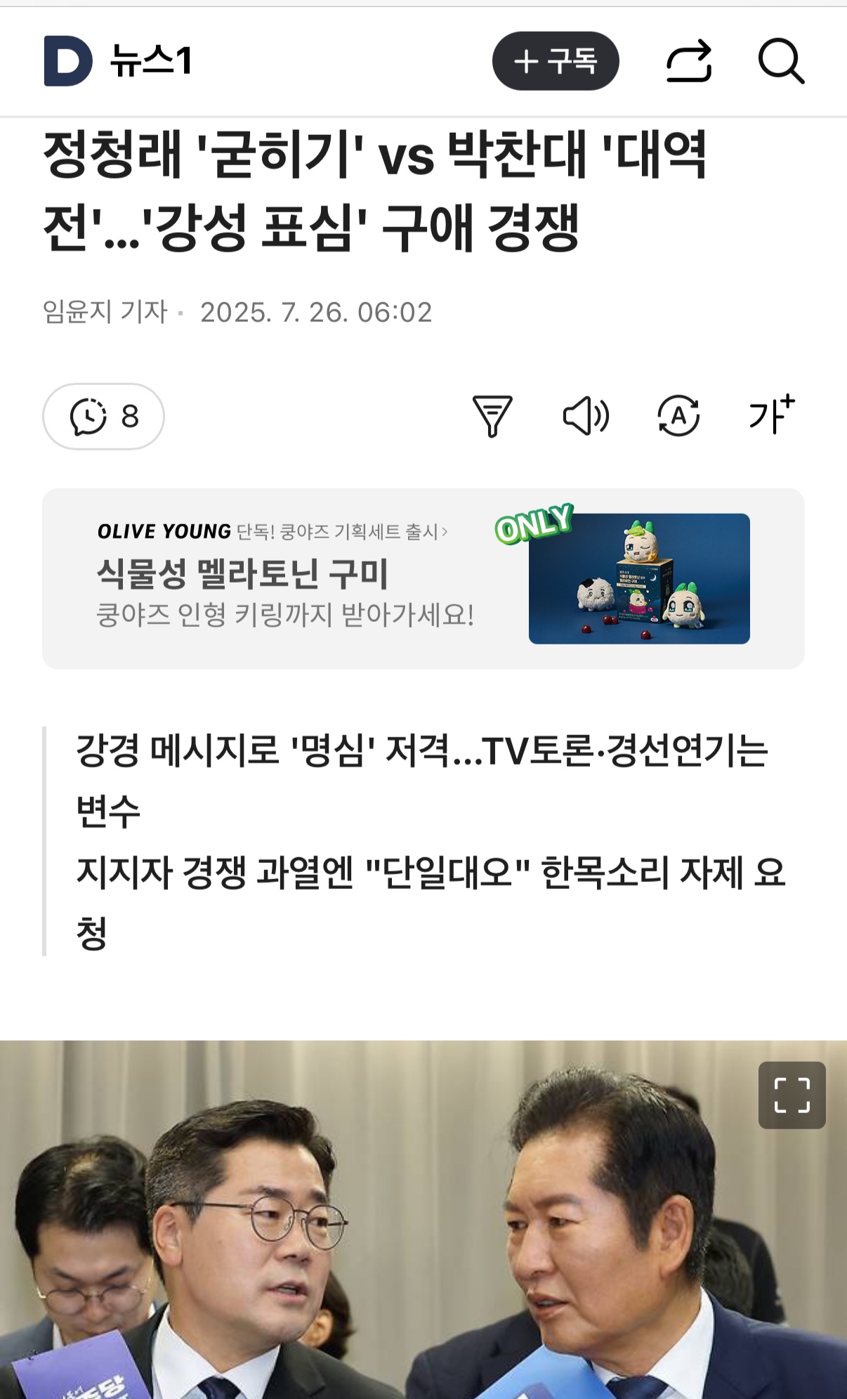 문제는 이 경쟁이 정책 비전보다는 ‘누가 더 강하게 윤석열을 공격할 수 있는가’에 초점이 맞춰져 있다는 점입니다. 정청래 후보는 “내란 수사에 칼을 들이대야 한다”는 등의 발언으로 극단적 메시지를 강조하고 있고, 박찬대 후보 역시 ‘국민의힘 국회의원 45명 제명’을 주장하며 강성 메시지로 대응하고 있습니다. 이는 중도 유권자의 이탈을 불러올 수 있는 위험한 구조이며, 민주당을 더 폐쇄적인 정당으로 몰고 간다는 지적도 피하기 어렵습니다.