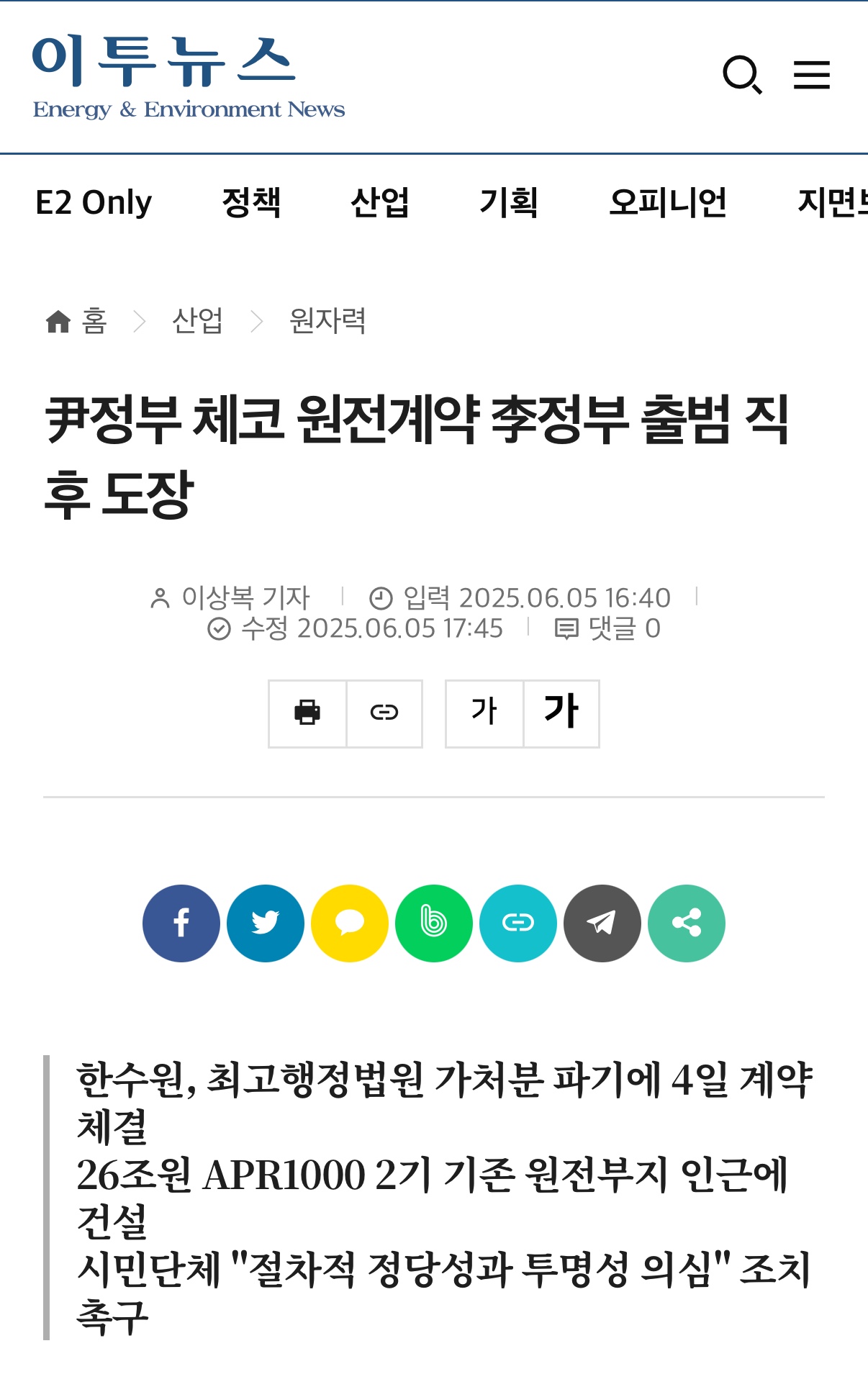 체코 원전 수주는 이재명 정부의 성과가 아닙니다.