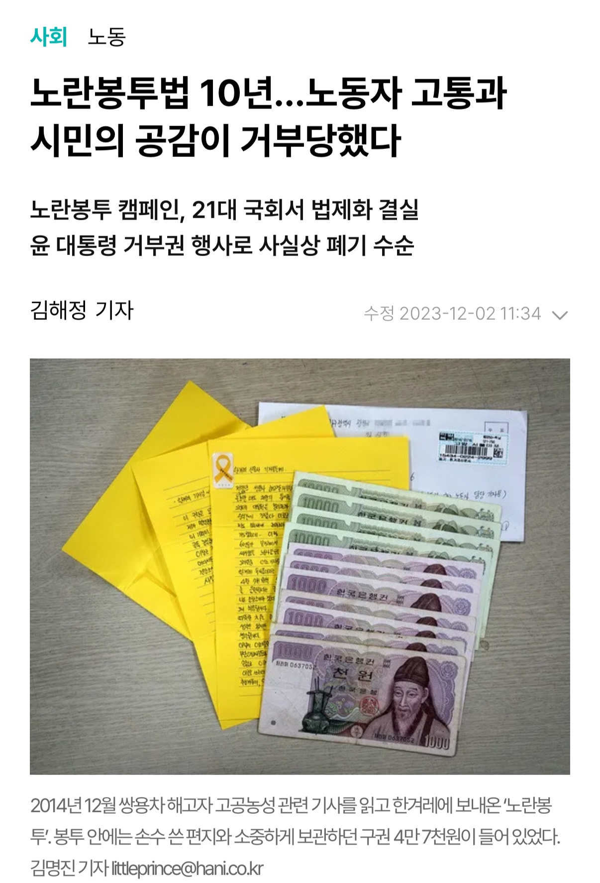 2. 노란봉투법, 불법 파업을 제도적으로 보호하다(기사 출저 : 한겨례 외_)